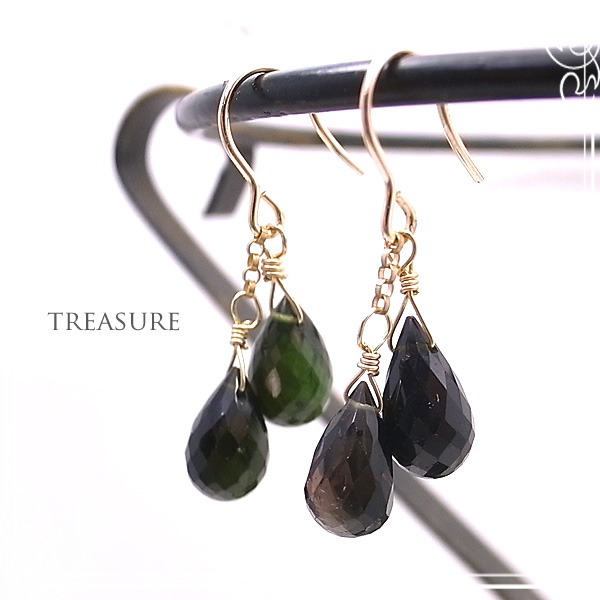 ブリオレットカットトルマリンの14KGFゴールドフィルドピアス |