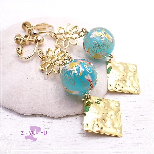 転写クモビーズとんぼ 、金属パーツ(ジョイントパーツスカシフラワー、エンボススクエアパーツ、丸カン、ピン、イヤリング)