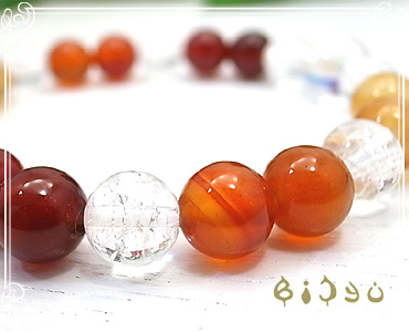 カーネリアン8mm ・オーロラクリスタル10mm ・クラッククォーツ8mm