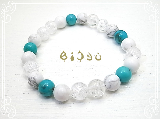 ターコイズのブルーとハウライトのホワイトのコントラストが