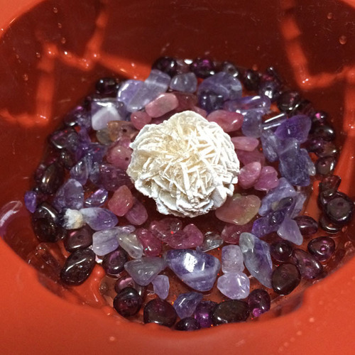 2:レジン(樹脂)、水晶ポイント、デザートローズ、ロードライトガーネット、ローズクォーツ、アメジスト、ヒマラヤ水晶さざれ、銅線、ラメ