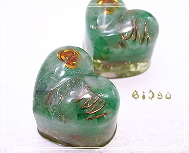 ぷっくりハート型 アベンチュリン&ペリドットオルゴナイト
