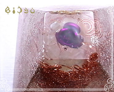レジン(樹脂)、水晶ポイント、ムーンストーン丸玉、ヒマラヤ水晶さざれ、チャーム、ステンレス、銅線、ラメ