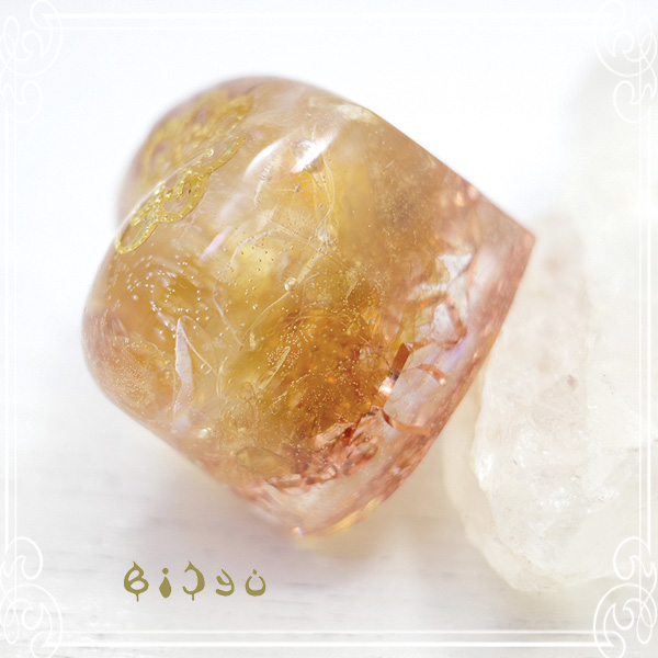 レジン(樹脂)、シトリン、水晶、銅、アルミ製モチーフ