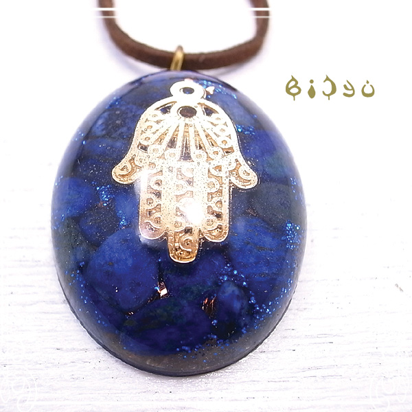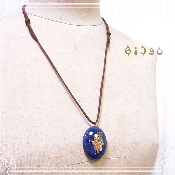 ラピスラズリ、レジン(樹脂)、銅、水晶、合金パーツ、合成スエードコード