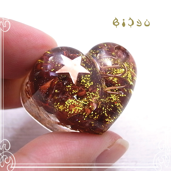 ぷっくりハート型 ガーネット&ラメ オルゴナイト |