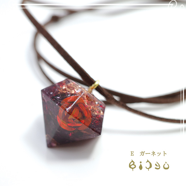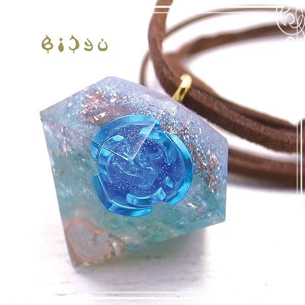 ダイヤ型薔薇入りオルゴナイトネックレス(艶出しコーティングあり) |