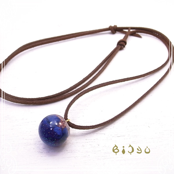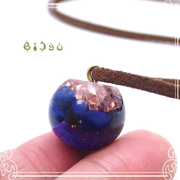 丸い果実のような形のラピスラズリの宇宙オルゴナイトネックレスです。