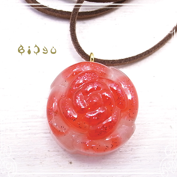 ミニバラ型オルゴナイト ネックレス ローズクォーツ(先端が濃い目)