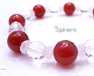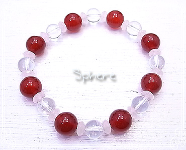 レッドアゲート(ラウンド10mm)、クラッククォーツ(8mm)、ローズクォーツ(ボタンカット)、オペロンゴム