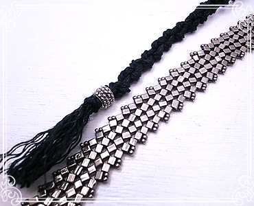 銀色のガラスビーズをたっぷり使った派手めなベルト。