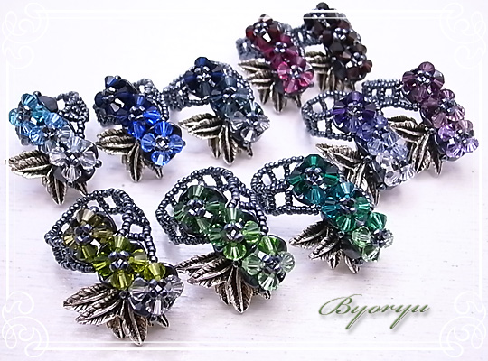 スワロフスキーの美しさを生かしたメタリックな指輪。