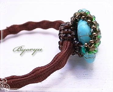 四角いマグネサイトのビーズを抱えるように沿わせた