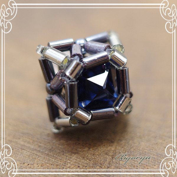 ピラミッド型のガラスストーンをビーズで包み込むように編みました。