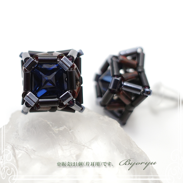 ジオメトリック片耳ピアス スクエア型 モンタナ×マホガニーレッド