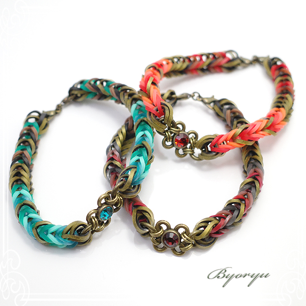 四葉のラバーチェーンバングル-アンティーク風[1]-3色あり