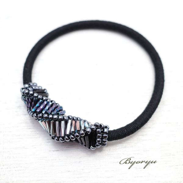 ビーズステッチ ロシアンスパイラルのヘアゴム レアカラー メタリックパープル