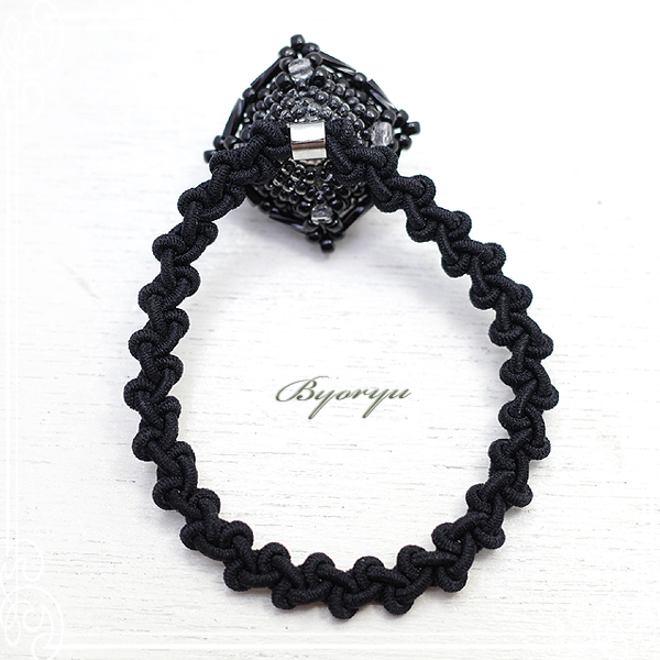 安全のため、ビーズが割れたり編み糸が千切れないよう、優しく取り扱ってくださいませ。よろしくお願いいたします。