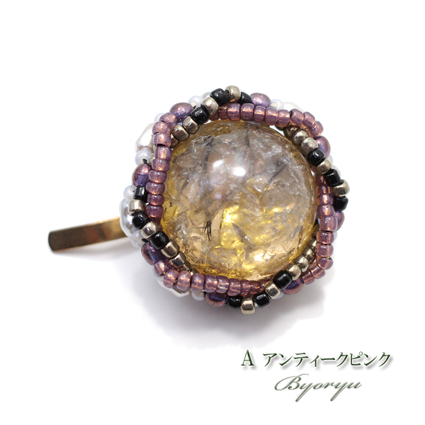 中央のカボションは天然石をイメージしてアクリルレジンで作りました。