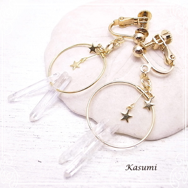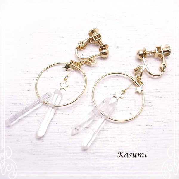 ゚・*:.。..。.:*・゚゚・*:.。..。.:*・゚  星と水晶のイヤリング  ゚・*:.。..。.:*・゚゚・*:.。..。.:*・゚