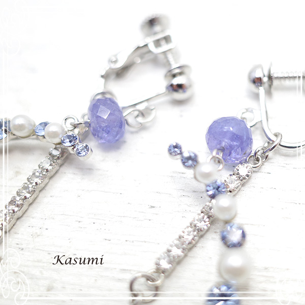 商品名 タンザナイトとクレセントパーツのイヤリング