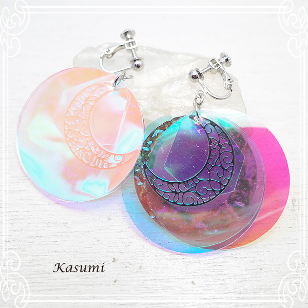 オーロラ加工を表面に施したビニールパーツに、金属パーツを挟み込み、