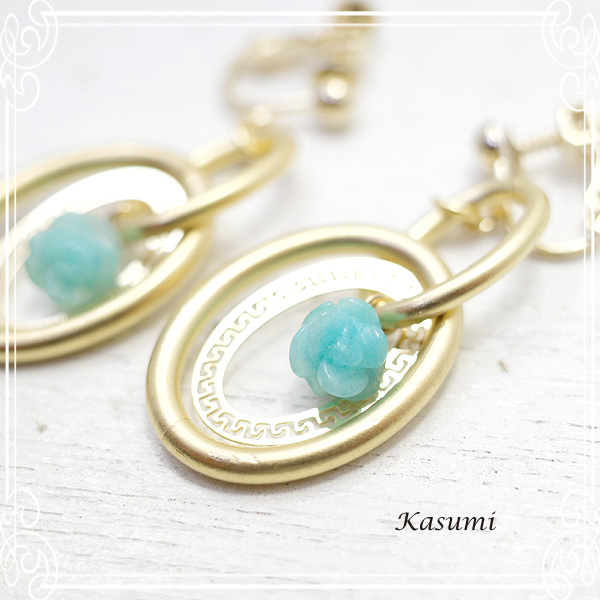 アマゾナイトで作った小さなバラに、マットな金属パーツを合わせて、