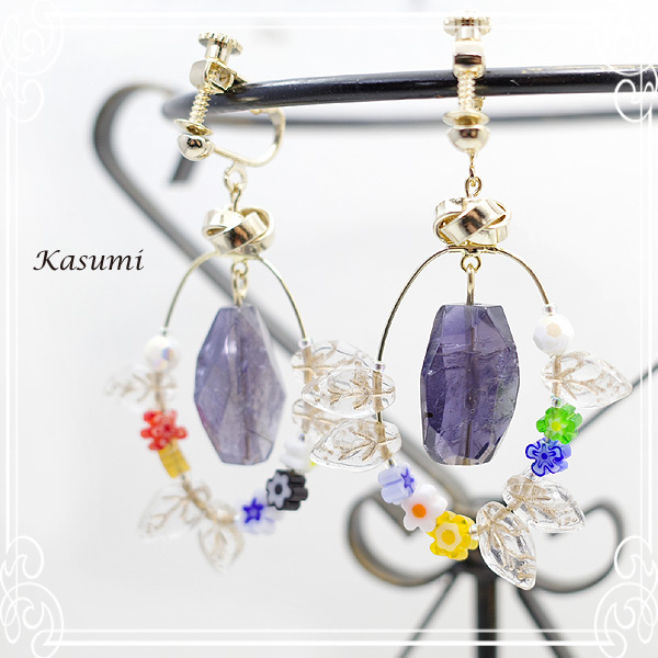 アイオライト ミルフィオリビーズ チェコビーズ 金属パーツ