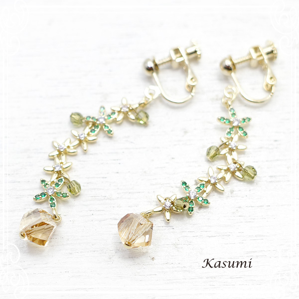スワロフスキービーズとキュービックジルコニアチャームのイヤリング |