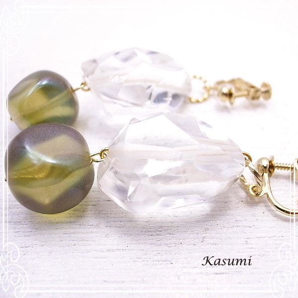 チェコビーズと合わせたら、エレガントな雰囲気のイヤリングになりました。