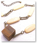 大きな四角いビーズとシェルのロングネックレス