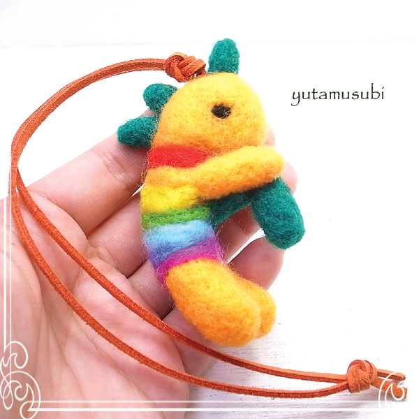 羊毛フェルト、スウェード革紐(オレンジブラウン)、合金製丸カン
