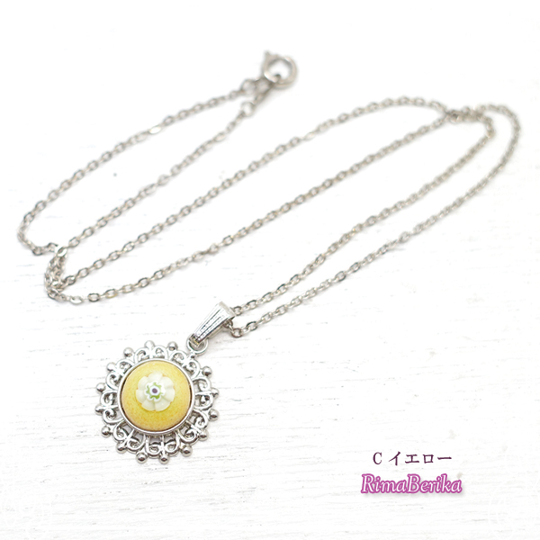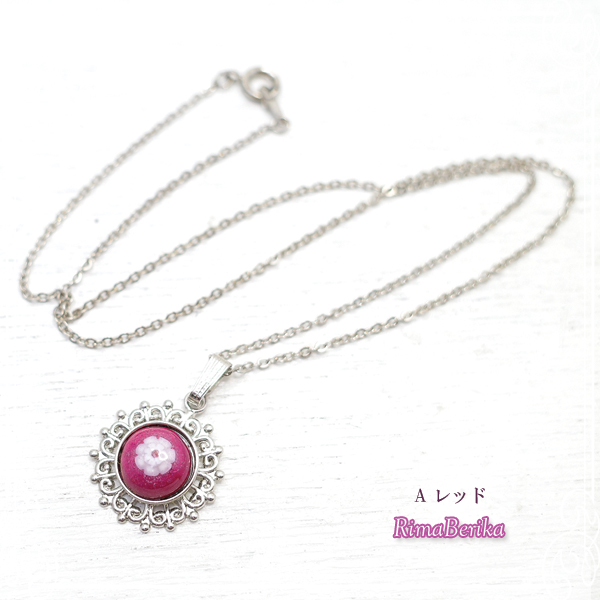 七宝ミルフィオリの飾り付きサークル型ペンダント[5色あり]
