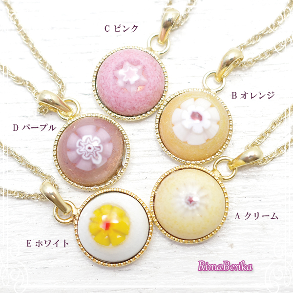 七宝ミルフィオリのサークル型プチペンダント/ゴールドカラー[5色あり]