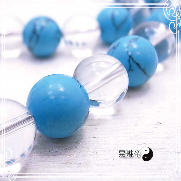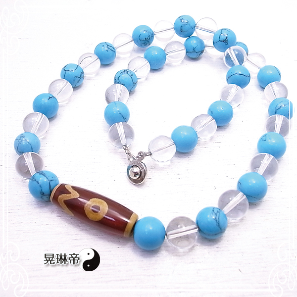 水晶10mm、ターコイズ10mm、息像懐天珠3p、メタルパーツ