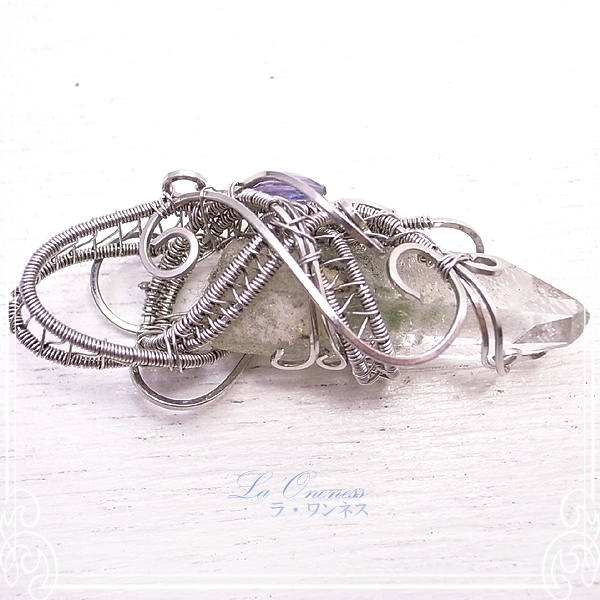 石:ブラジル産水晶六角柱、インド産アイオライト ワイヤー:ステンレスワイヤー