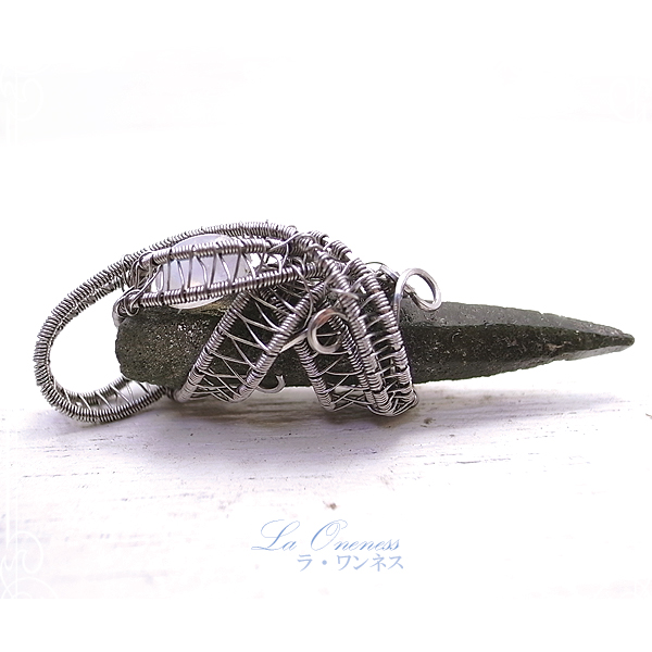 石:ネパール ガネッシュヒマール産 緑泥石入り ヒマラヤ水晶六角柱、スリランカ産ブルームーンストーン ワイヤー:ステンレスワイヤー