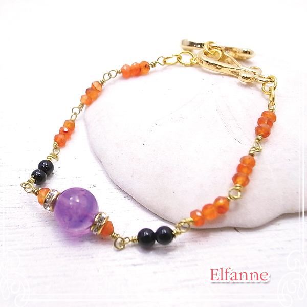 小粒のカーネリアンとオニキスが特徴の華奢なブレスレットですが、
