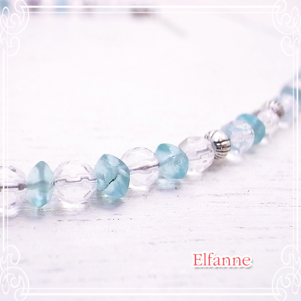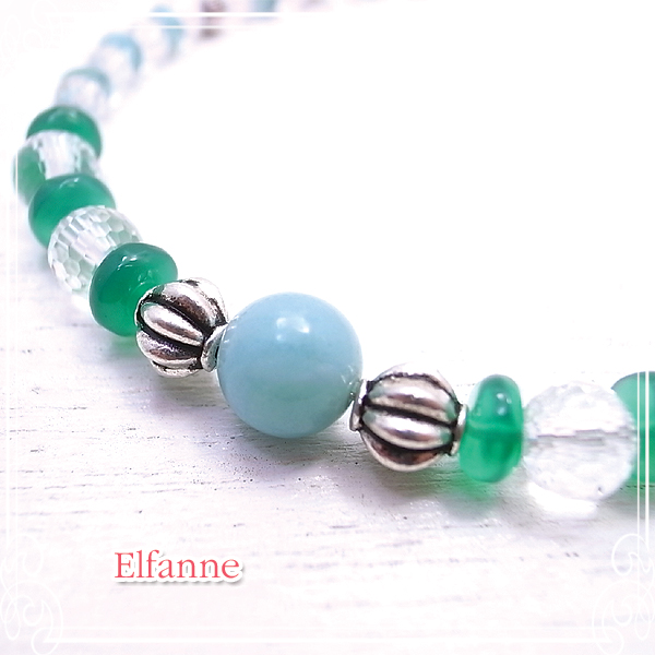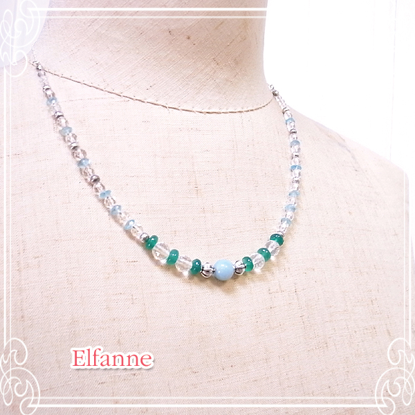 アマゾナイト、グリーンオニキス、クリスタルクォーツ、アクアマリン、メタルパーツ(ボールチップ)、シルバーチェーン