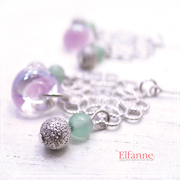 アメリカンガラスパープル6mm、アベンチュリン3mm、スカシパーツ15mm