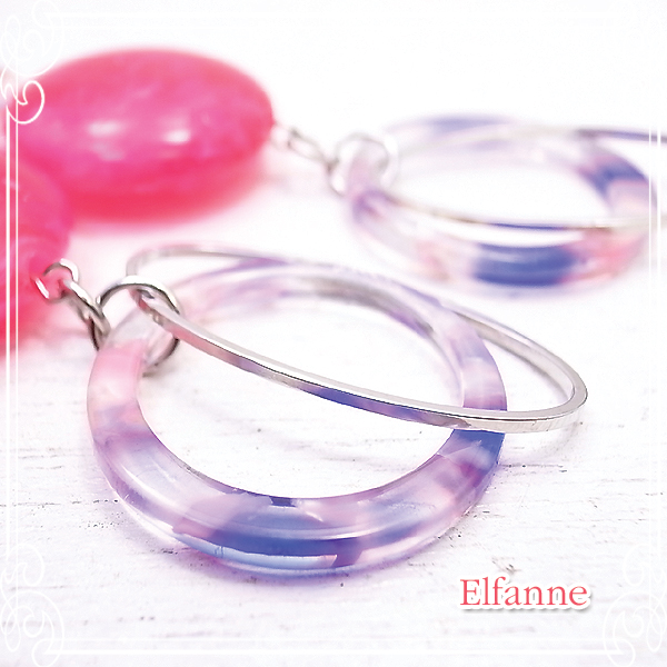 パープルと淡いピンクのリング型のマーブルパーツと楕円形の
