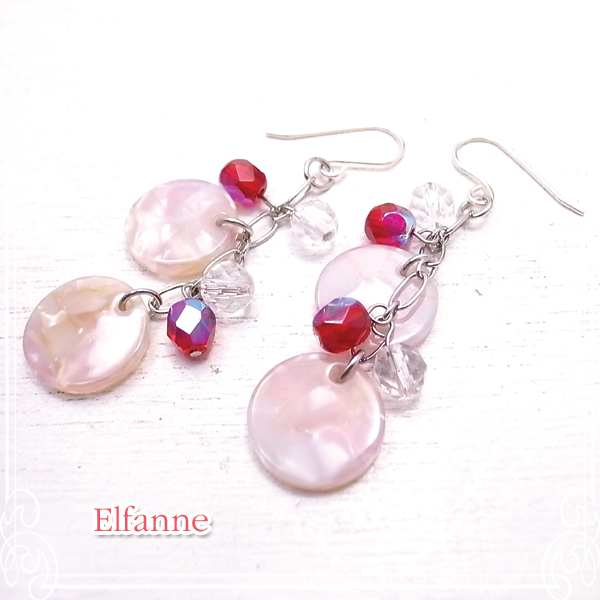 淡いピンクが可愛いマーブルパーツを左右に二つずつぶら下げました。