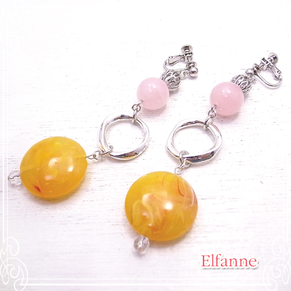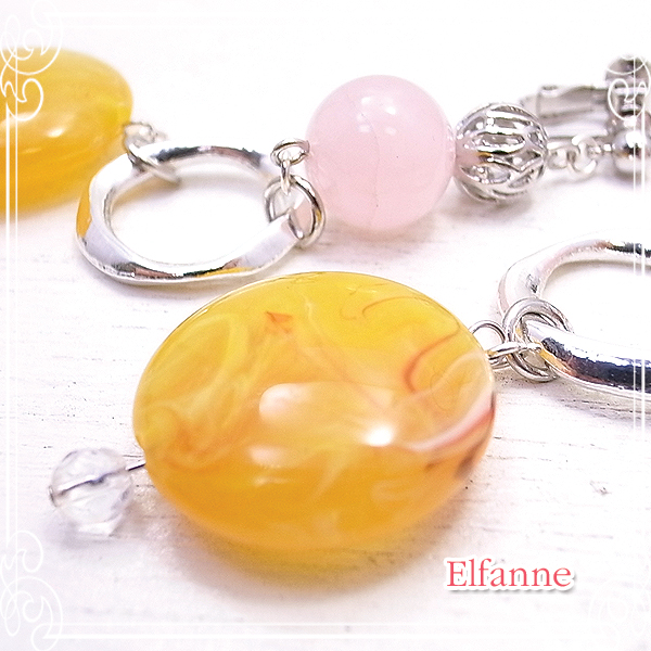 リングパーツを合わせて、ハニー色のマーブルビーズをプラスしました。