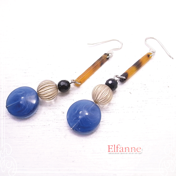 マーブルパーツ(べっこう風)、オニキス、アンティークビーズ、マーブルビーズ(マーブルブルー)、丸カン、Tピン、ピアスフック(シルバー925)