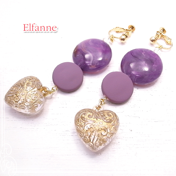 可愛さをプラスしたくてハート型のぷっくりとしたアンティークビーズをぶら下げました。