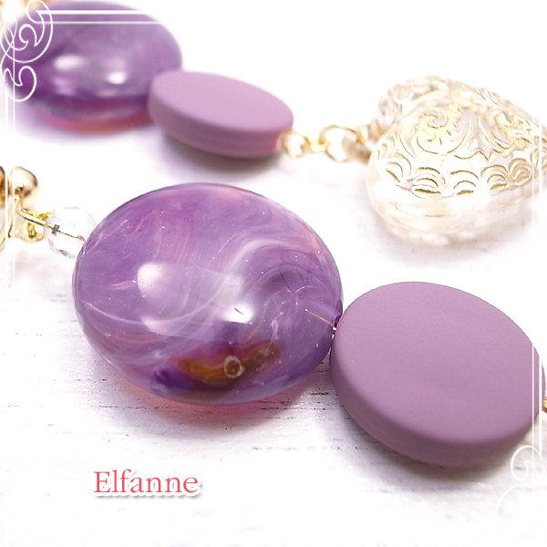 落ち着いた色合いの紫のマーブルビーズと、質感もマットなラバービーズに、