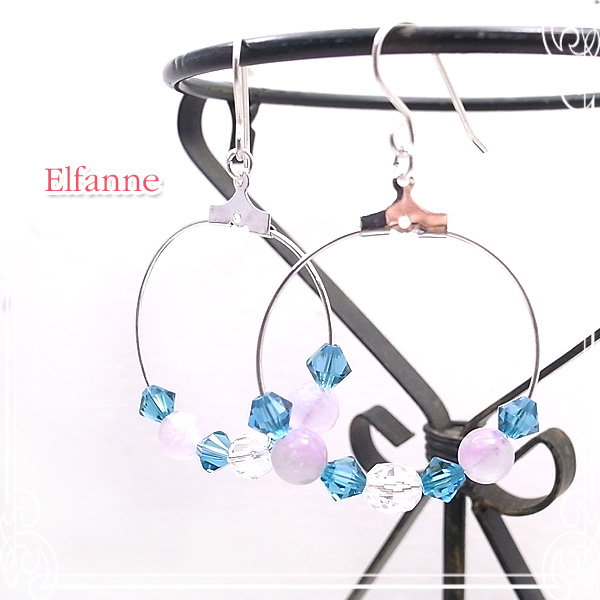 ピアス・・・フープパーツ、スワロフスキー(インディゴライト)、ラベンダーアメジスト、クリスタルクォーツ、