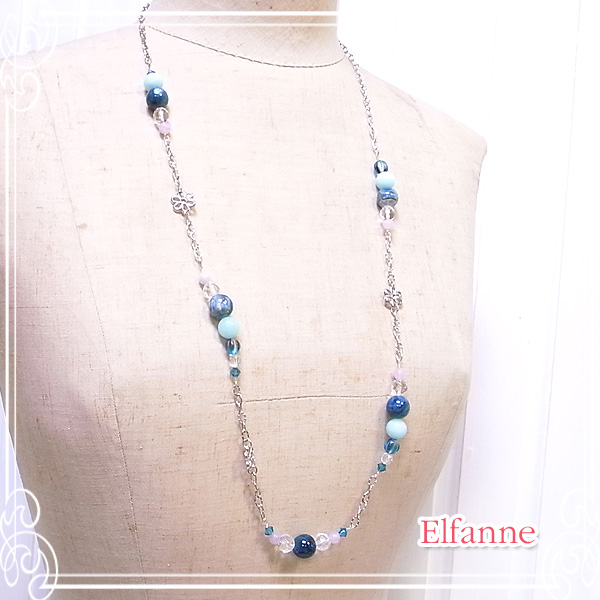 ネックレス・・・マーブルビーズ(マーブルブルー)、クリスタルクォーツ、ラベンダーアメジスト、