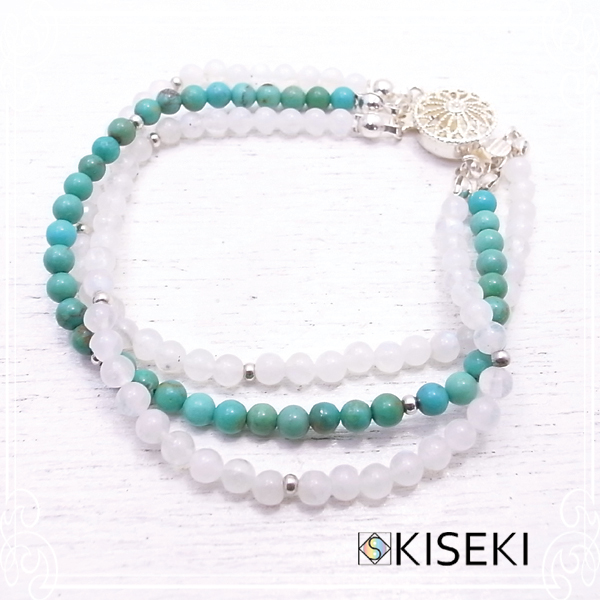 〜 ターコイズ&レインボームーンストーン 3連ブレス 〜