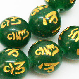 アベンチュリン六字真言金文字丸玉ビーズ8mm/10mm